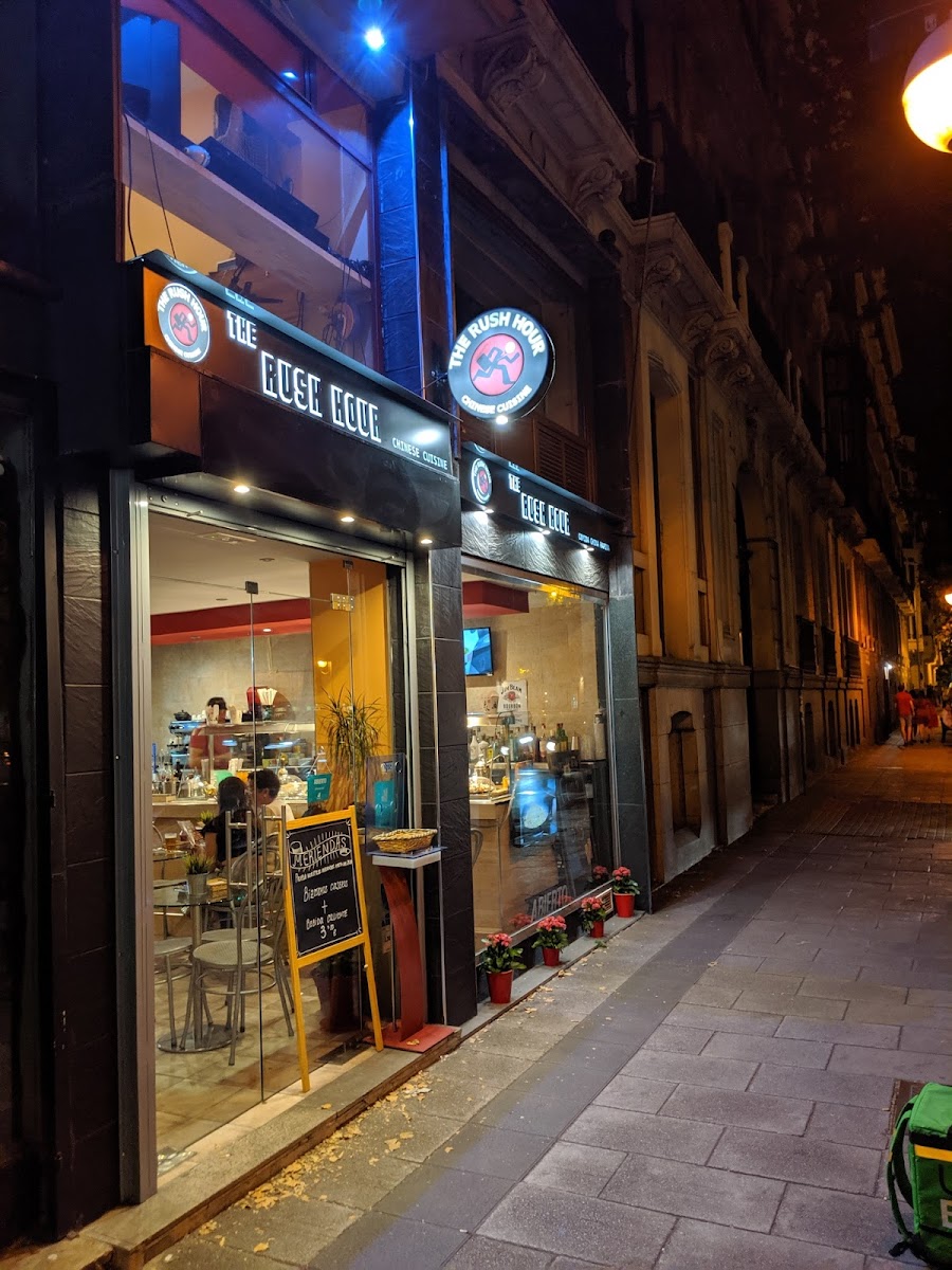 We bumped into The Rush Hour after checking into our BnB in Madrid. It was refreshing to sit outside watching people walk by. You can also eat indoors in lousy weather. We had two appetizers. Both made fresh and served hot and delicious. Meals were inexpensive and delicious.